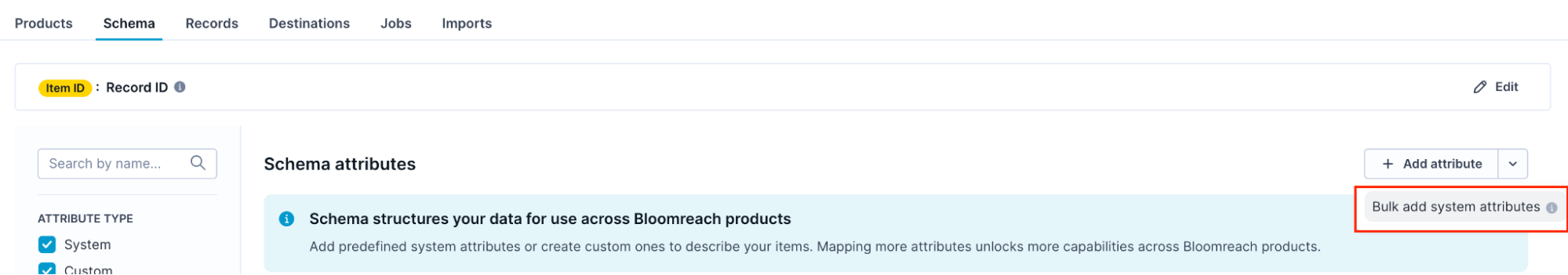 Click the dropdown next to the + New attribute button and click Bulk add system attributes.