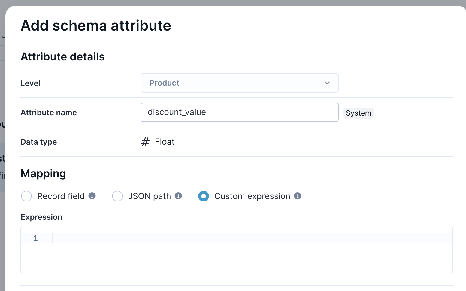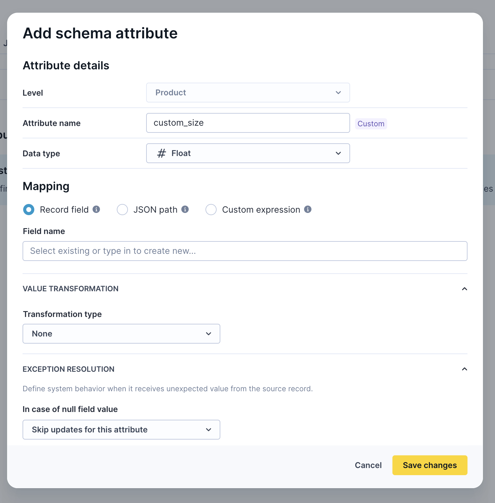 Choose one of the three mapping options: Record field, JSON path, or Custom expression.