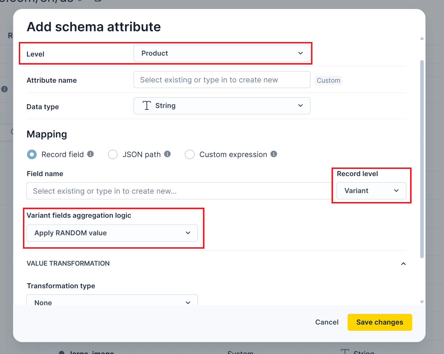 Record level: Select which level (product or variant) of your data hierarchy contains this field.