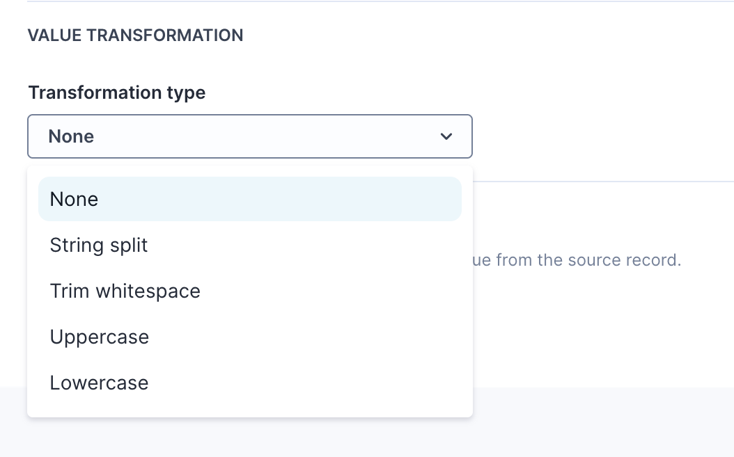 Enter the exact field name in the source record. Set the source value from the product or variant source level.