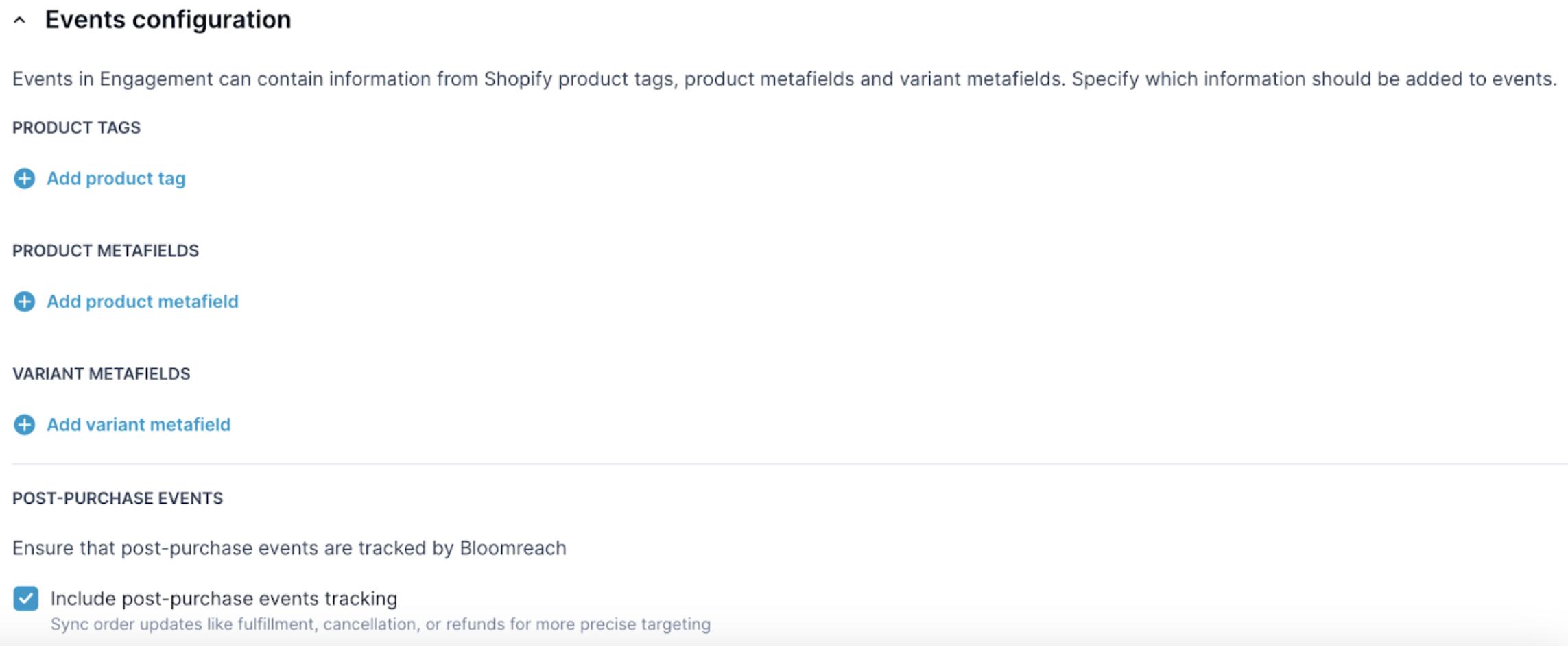 Choose which post-purchase events you want to track in Bloomreach: