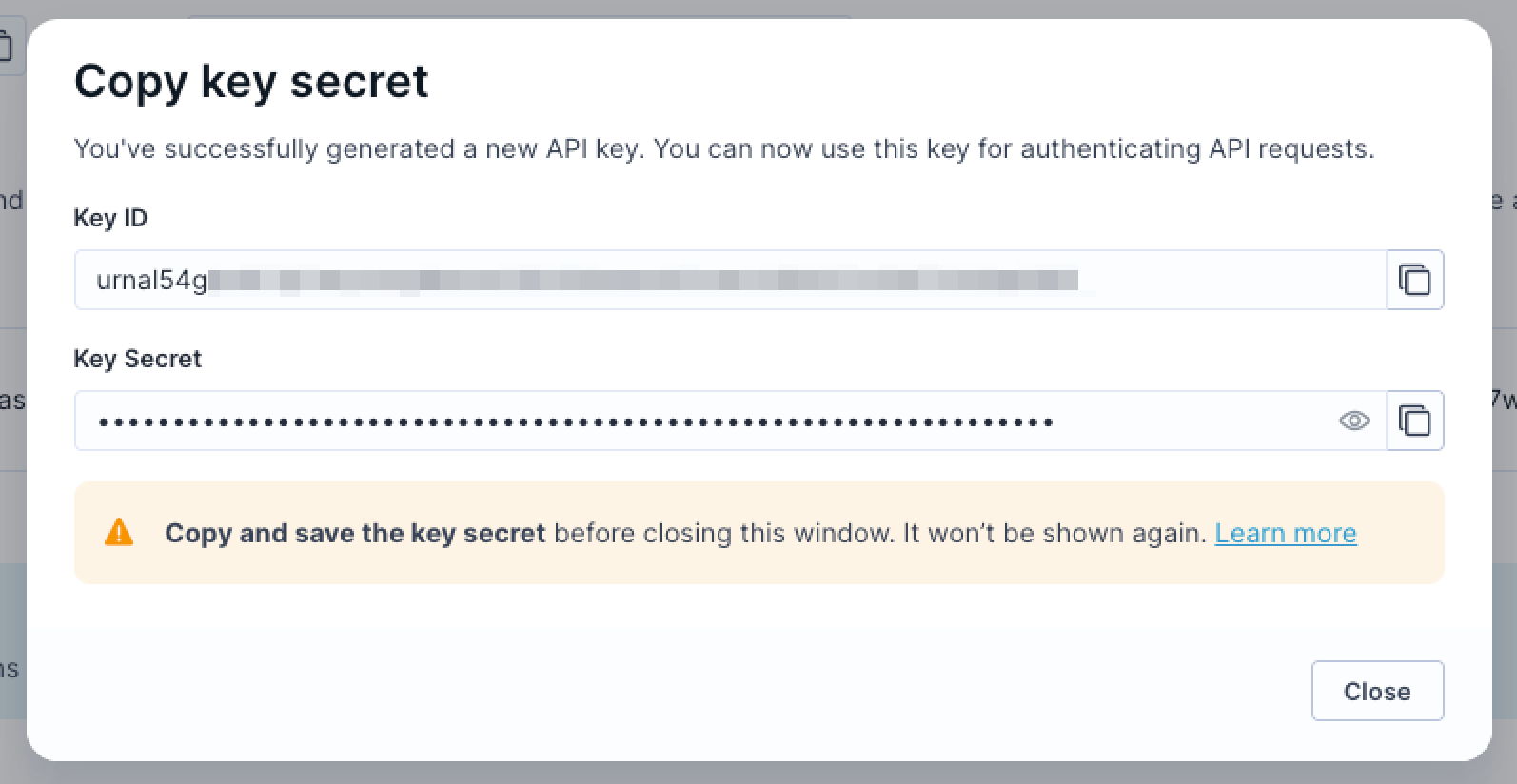 In the API Credentials section, click + Create new key to generate a shared secret.