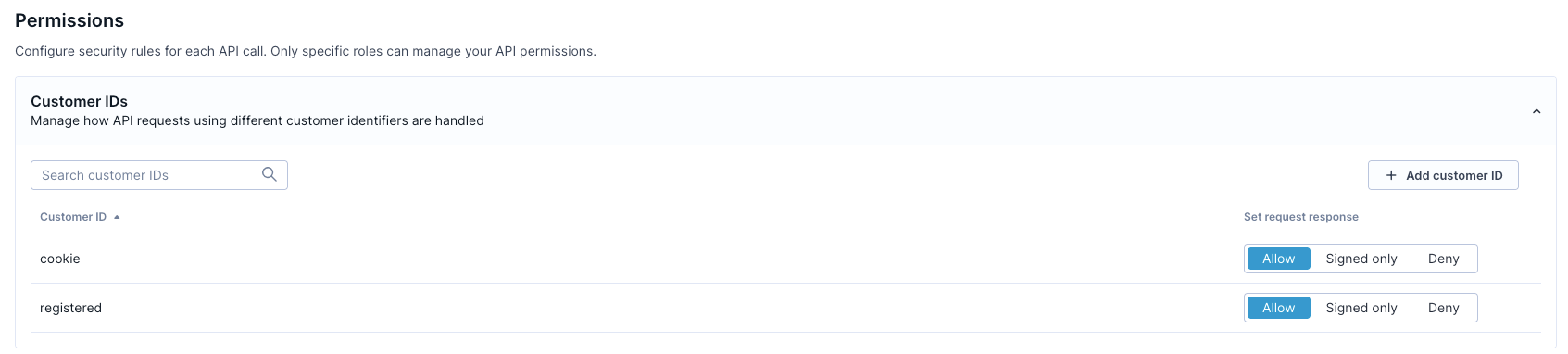 NoteThis section applies only if you enabled JWT signed-only permissions for customer IDs.