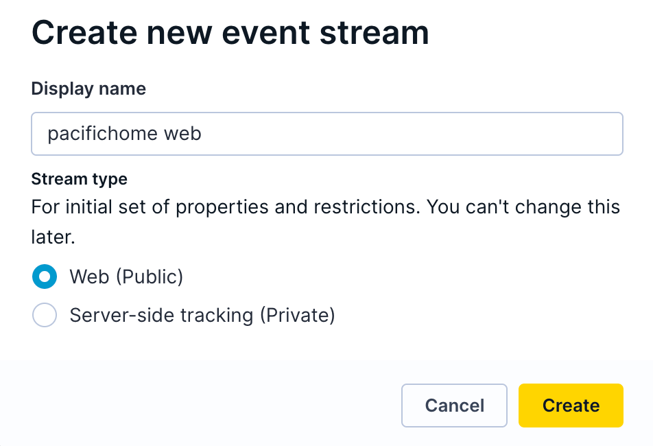 Name your event stream descriptively (include locale identifiers for multi-locale setups).