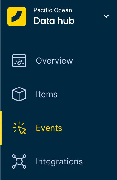 Log in to Data hub and navigate to Events in the navigation menu on the left.