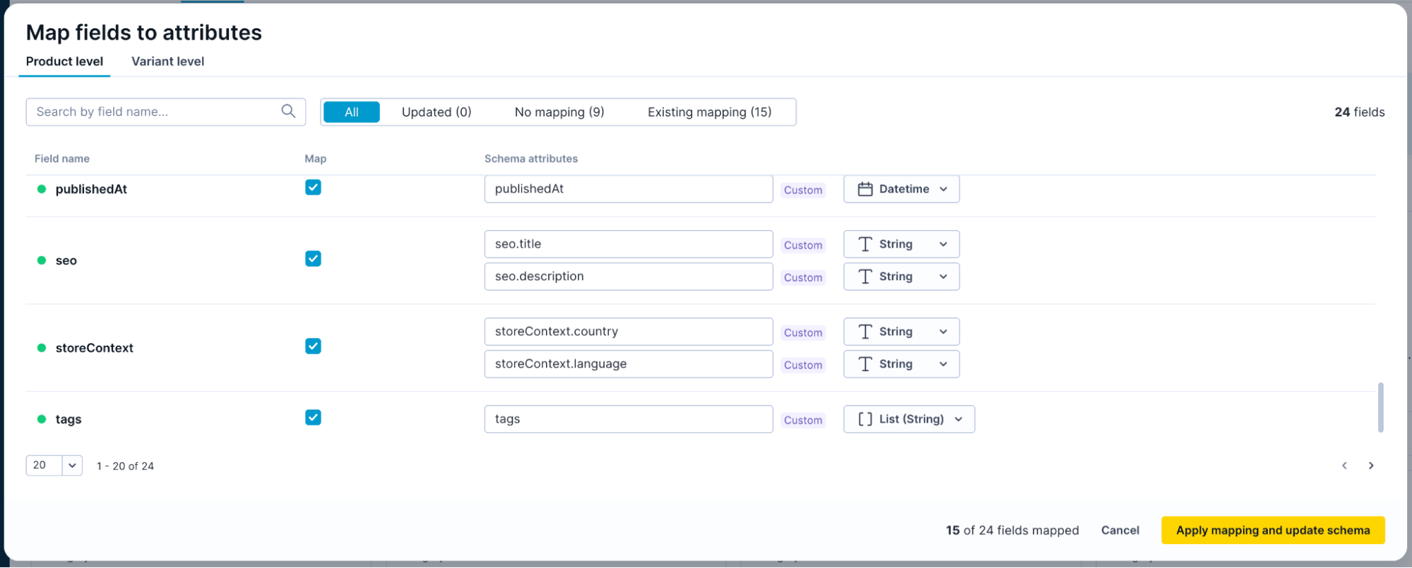 Once complete, click Apply mapping and update schema. This updates the schema.