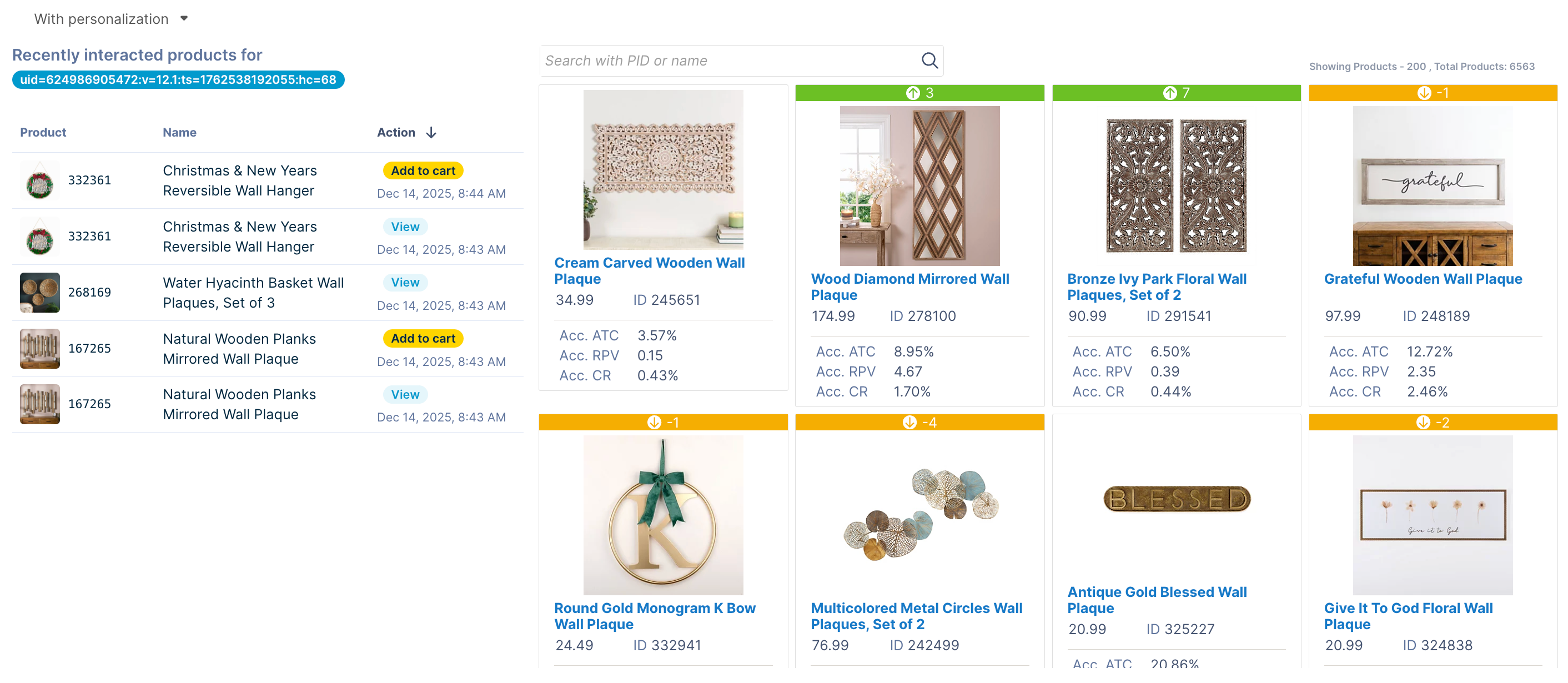 To maintain consistent and RPV-optimized personalization performance, the 1:1 Personalization feature includes built-in controls that govern how products are ranked and displayed.