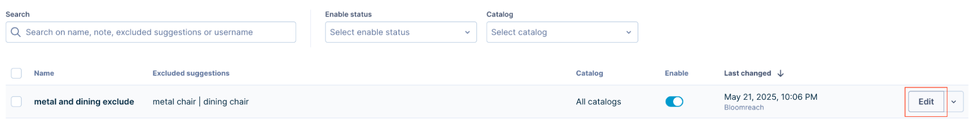After editing, disabling, or deleting a rule, use the Autosuggest preview section to verify the changes.