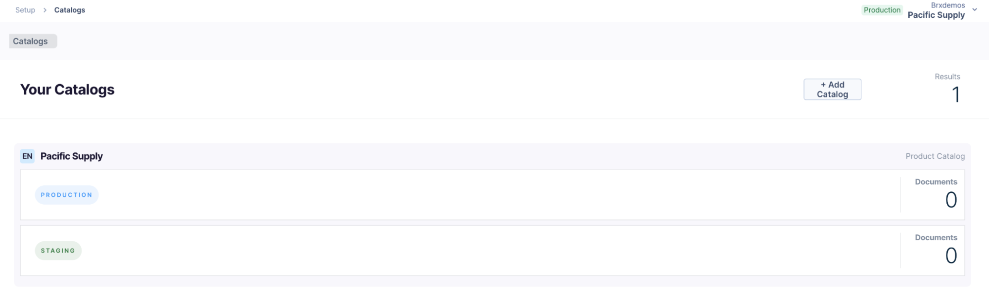 To add an additional catalog to the account, contact Bloomreach Support and provide the language, name, and type (either Product or Content).