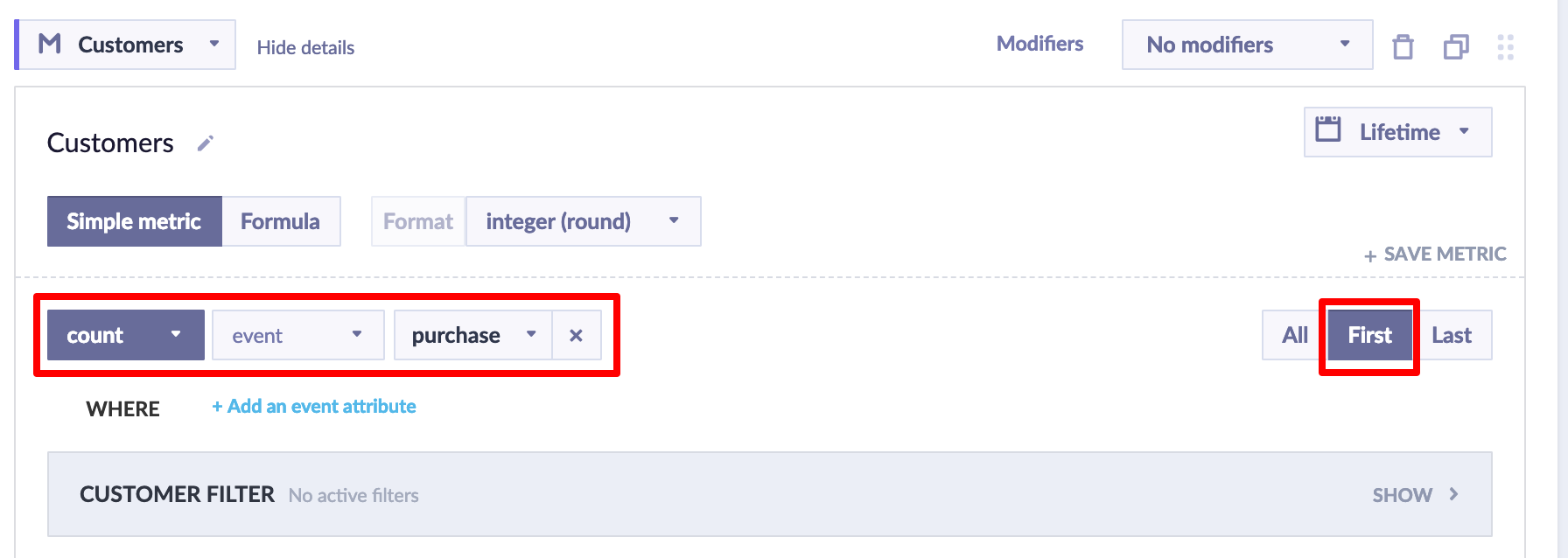 Create the Conversion metric. Copy the Customers metric and apply this formula: