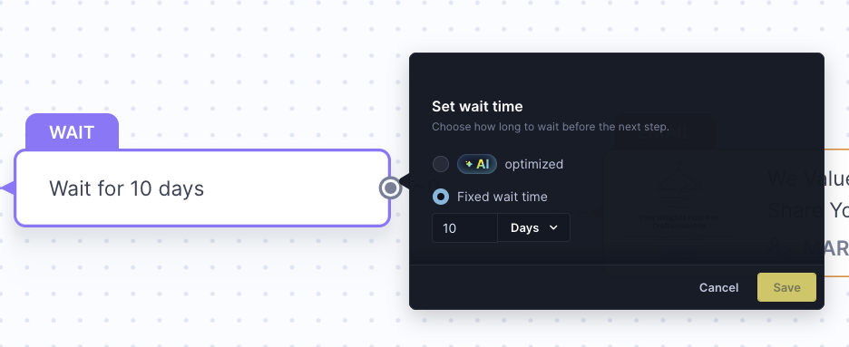 AI-optimized delays are automatically enabled for supported use cases (Abandoned Cart and Browse Abandonment) during journey brief approval. Once generated, you can disable AI optimization but can't newly enable it from the Canvas.
