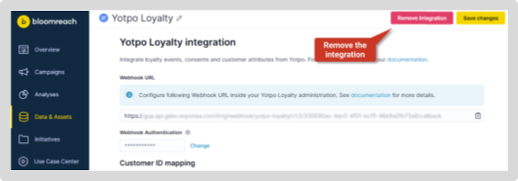 To disconnect Yotpo Loyalty from Bloomreach Engagement, reverse the setup process in both platforms.