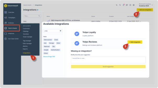 - Go to Data & Assets > Integrations.
